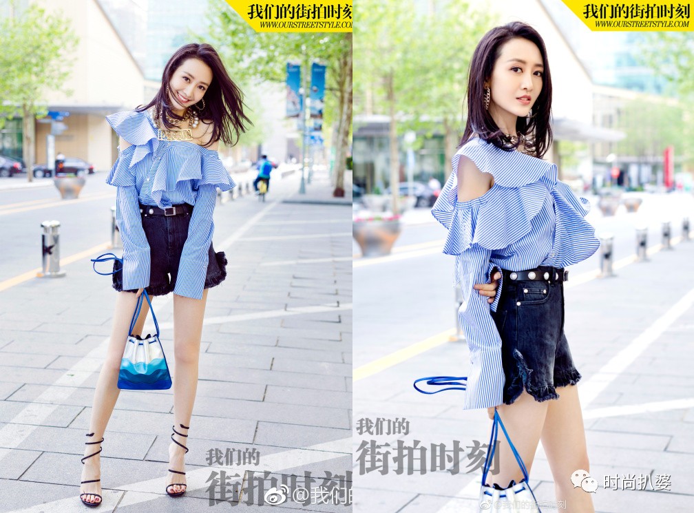 王鸥前段时间也穿过类似的设计款,来自Etam Paris,搭配最简单的牛仔短裤就很好看,性感又有少女活力感。