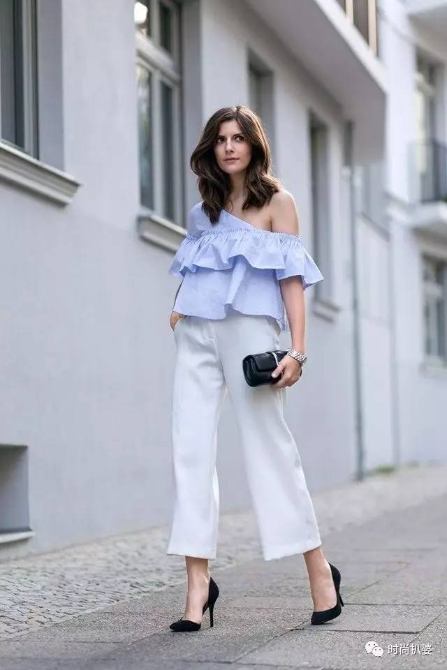 这种像是大领子扯下半边的斜肩是今年最火热的款。