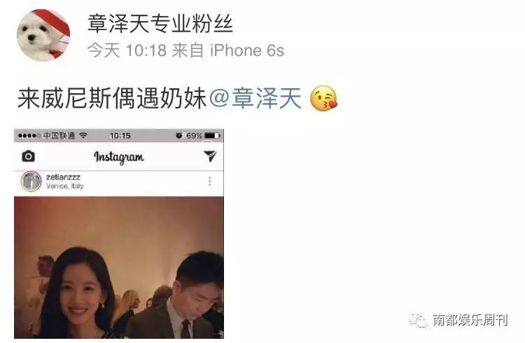 今天,微博名称为“章泽天专业粉丝”的网友晒出了一张章泽天和老公刘强东的照片,称:“来威尼斯偶遇奶妹@章泽天。”