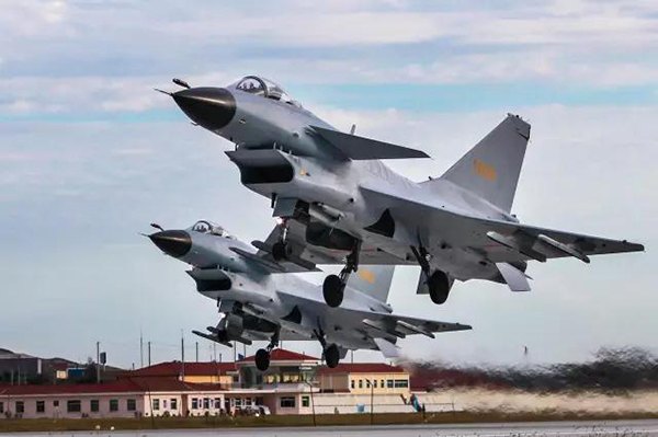 “起飞!”第一批起飞的副参谋长孙迪和飞行员范文拉起时,雨突然大了起来,战机的座舱盖被雨水遮盖。两人观察各类数据,熟练操纵,战机直冲云霄。