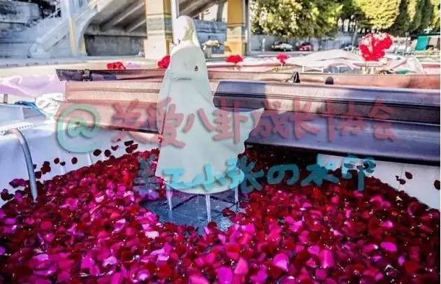 现场求婚地点很有寓意,这是在以莫比乌斯环布置当地一座石桥,用象征“无限”寓意的永恒符号来描绘两人携手的漫漫8年。