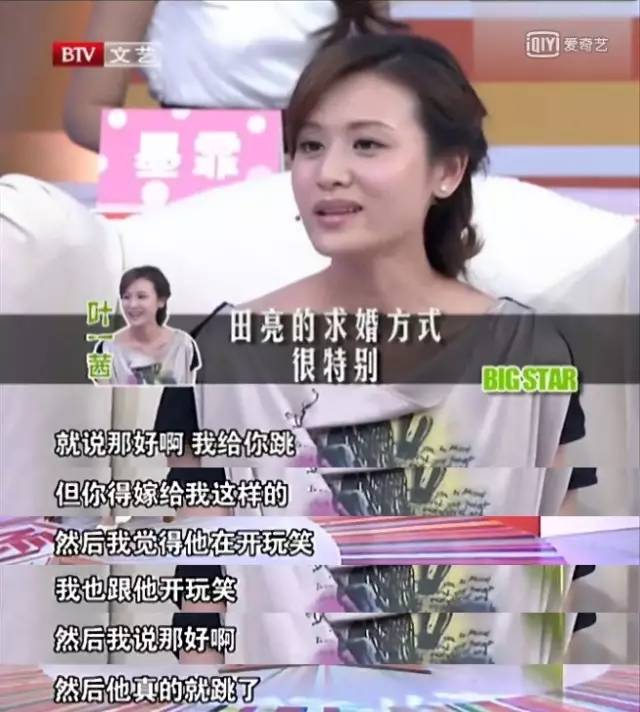 在女生眼里的一句玩笑,没想到田亮却是真心的,然后叶一茜就嫁给田亮了。