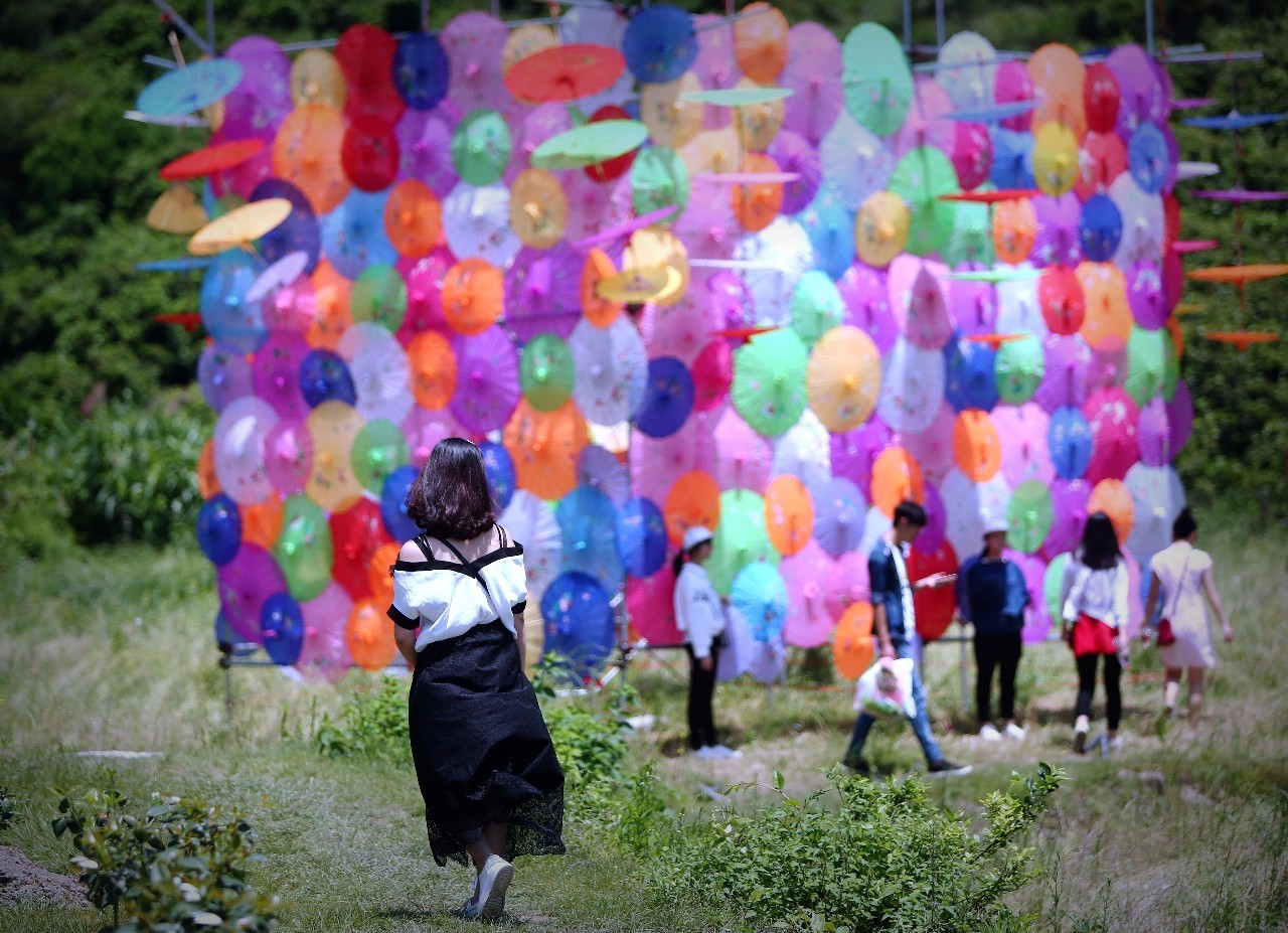 大型油纸伞长廊、巨型花伞造型