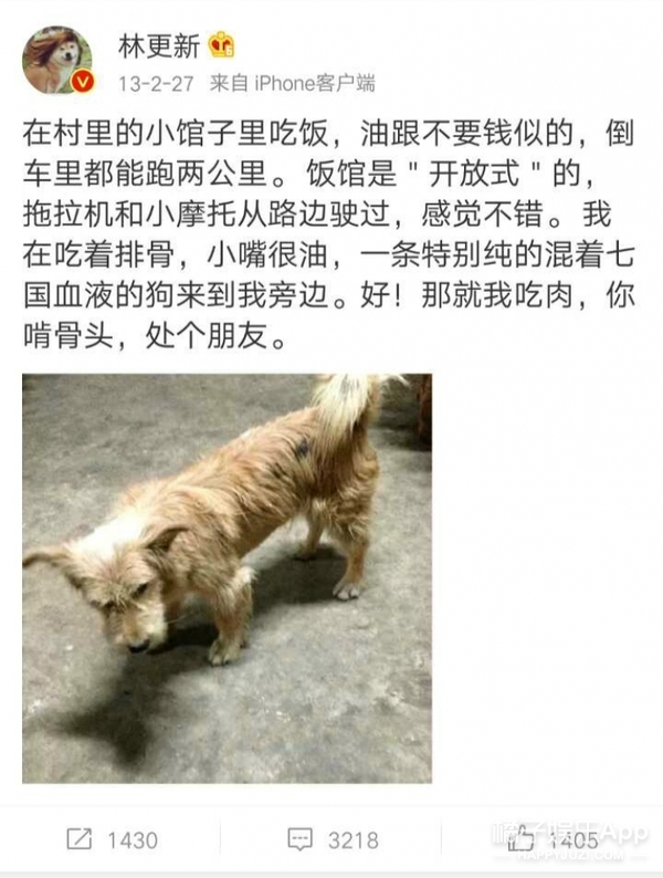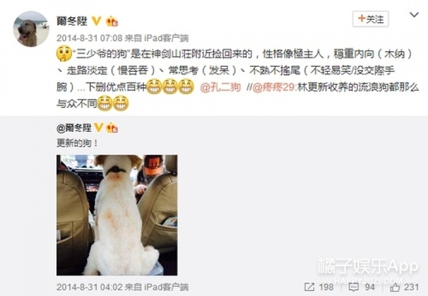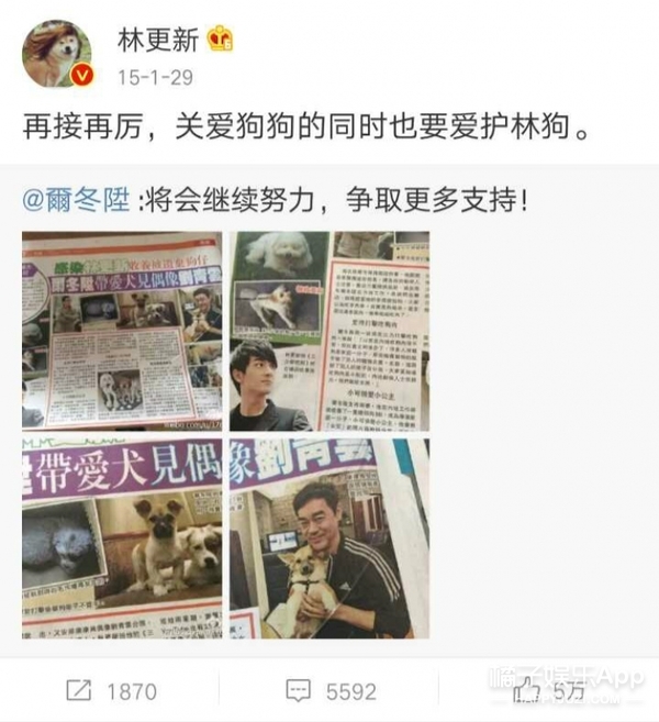 原来,有人从微博里发现,林更新这个boy自带“捡流浪狗”体质!从14年尔冬升的微博看来,这条大狗狗正是林更新收养的!背影好可爱哦!