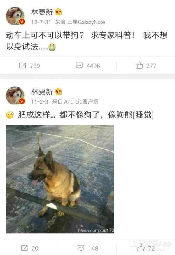 看了看大新哥的微博,和狗有关的真的好多,居然还曾有过带着狗上动车的想法,哈哈哈哈泥垢!