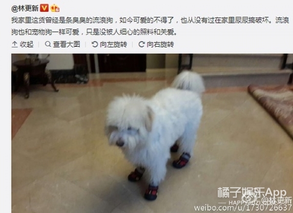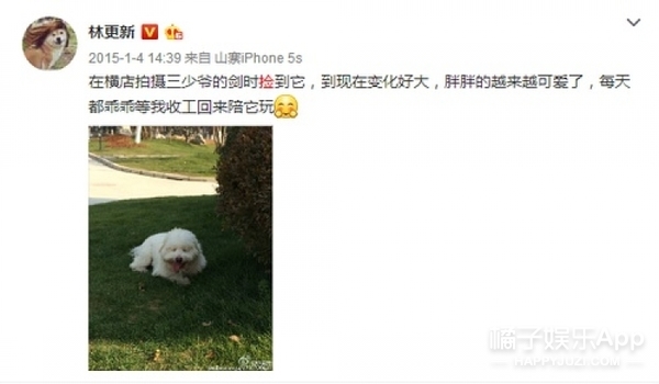 曾经的一段微博里,林更新也说道捡这只小狗的经历。虽然是只流浪的狗,但是因为它一直粘着林更新,爱狗的大新不仅没有讨厌,还认为是和小家伙有缘,从此收养它,给它洗澡治病,义无反顾的当起了铲屎官。不得不感叹一下,我们大新哥真的好有爱心啊!