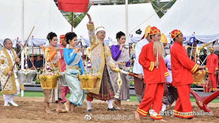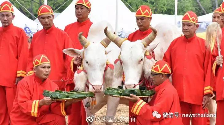 #泰国社会头条# 拉玛十世哇集拉隆功国王在曼谷皇家田主持农耕节大典,帕差拉吉帝雅帕公主和巴育总理等皇室成员及政府高官出席。按照传统农耕节大典进行白牛占卜仪式,白牛吃米、玉米,寓意粮食丰收;白牛吃草,寓意雨水充足、粮食丰收。