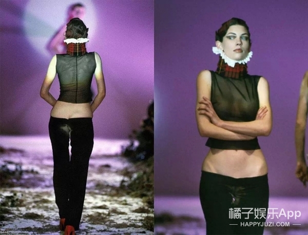 早在1995年它的 Highlang Rape系列就已经开始出现露屁股的踪迹,在那个相对保守的时代,这条裤子就是犯罪一样的存在,McQueen为了防止裤子下滑还在里面加了橡胶涂层。