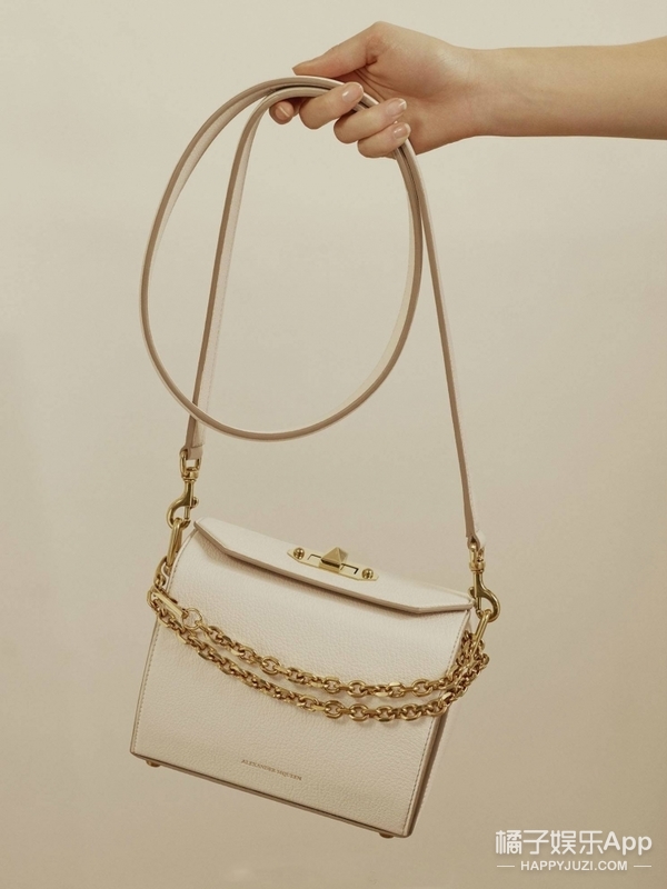 手拿麦昆小size包包,链条设计不仅加强了整体的质感,也多了一份帅气和硬朗。天儿越来越热白色的包包当然是首选了!整体的设计简单又不失特点,完全可以作为经典款收入囊中!