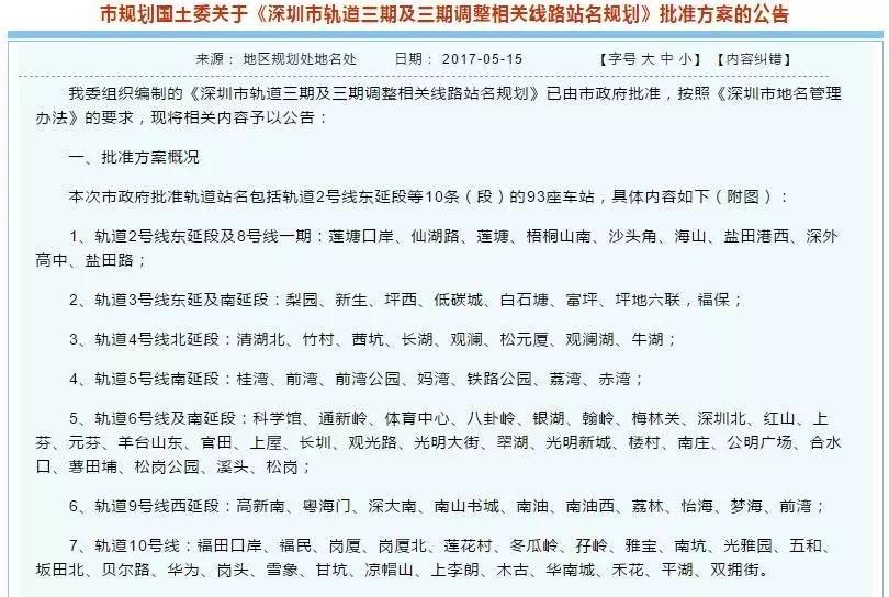 昨日(15日),深圳市规划国土委发布了《深圳市轨道三期及三期调整相关线路站名规划》,公布包括轨道2号线东延段等10条(段)的93座车站。