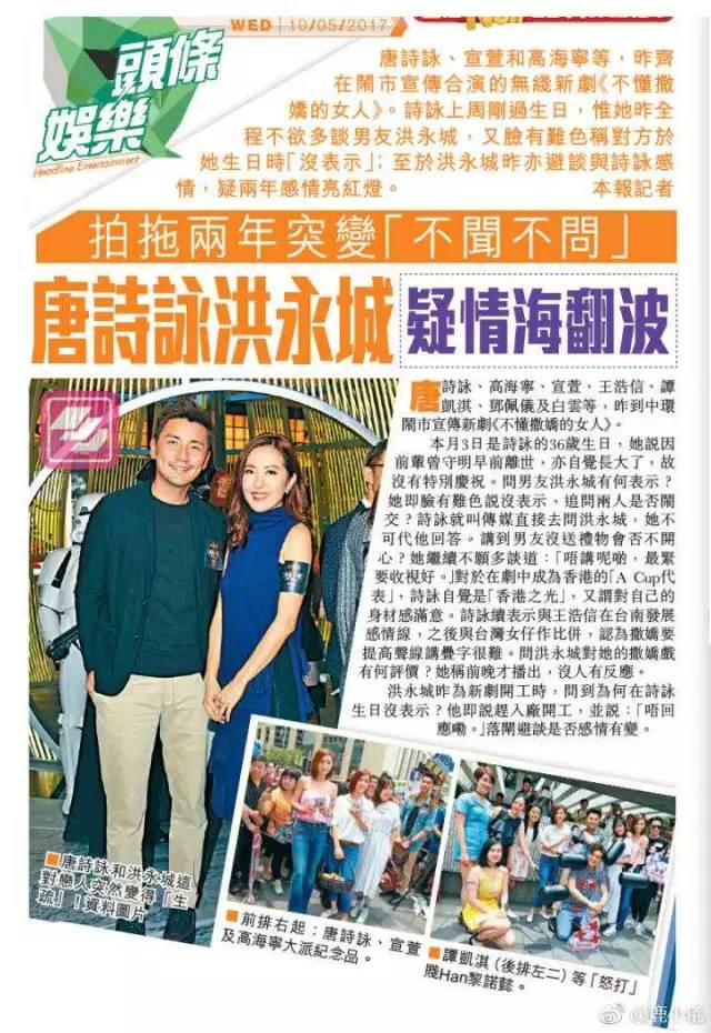 一是男方洪永城即使有了“最佳女友”唐诗咏,依然难改花心本性,被港媒称为“花弗男”,绯闻多到一页纸都写不完。