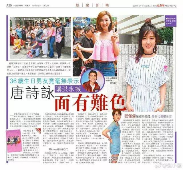 到了5月份,开始有报道指出,唐诗咏生日时,男友洪永城毫无表示,聊起男友,唐诗咏还面露难色: