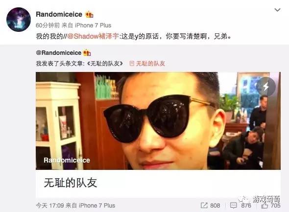 而后,iceice的队友shadow转发该内容,并表示这些内容为选手y的原话,iceice只是单纯把它贴了出来。