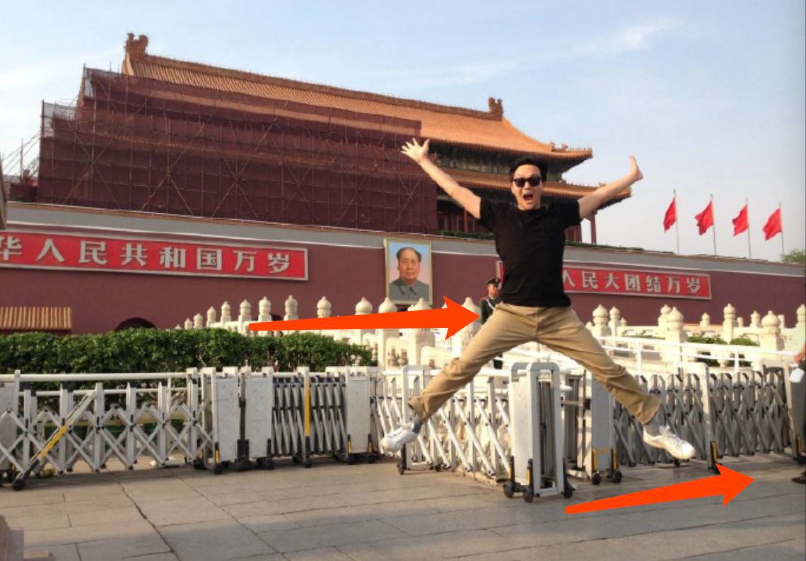 金水桥一般情况下是禁止游客通过的,走到桥的护栏前,她的身后是没有人的,这时就要抓紧时间了。搞怪一点,兴许还能拍出张智霖的这种感觉。