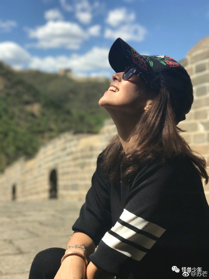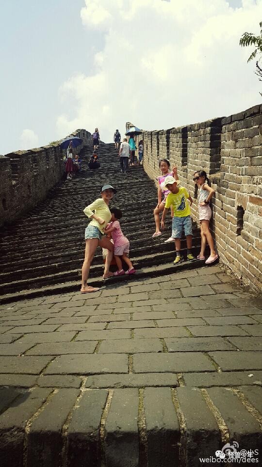 小S2015年暑假游长城,从她的照片可以看出这并不是摆拍,身后还有外国帅哥游客,不过总体来看,长城上的游客其实并不多。