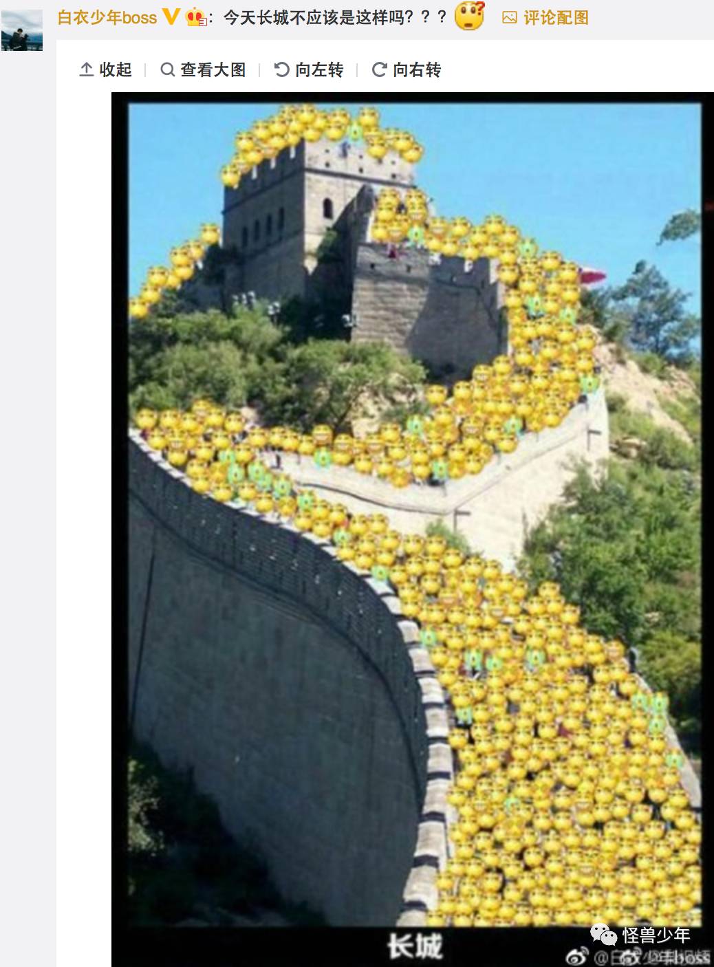 当然,除了单身狗这个梗,网友也发现,这张照片里的长城,人烟稀少!