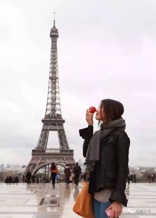 巴黎铁塔前合影的人一定特别多,要想与铁塔合影,这时就要像高圆圆一样找到一个合适的位置。人在塔的一侧,而且不能看塔,让人和塔差不多大,这样的画风才能和谐。