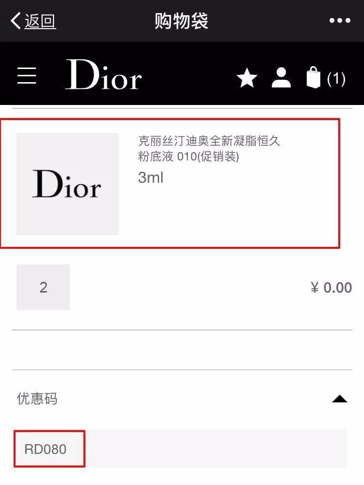 购买唇膏的小仙女,只需在支付页面输入专属优惠代码 RD080(注意!这点很重要!),即可获得专享好礼3ml 的 Dior迪奥全新恒久凝脂粉底液2支! 没错,一下送两支哦!