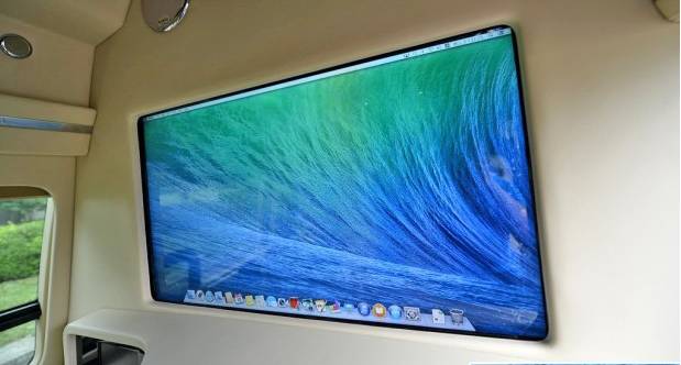 关闭隔断后,可以升起一台40英寸液晶显示屏,包含高清多媒体播放、苹果系统、卫星电视等功能