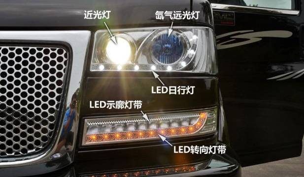 由于各个改装厂风格不同,所以在每辆车的细节上会有所变动。这台车近光在内侧,远光在外侧,与传统远、近光位置正好相反,理论上,近光设计在外侧,照明效果会更好