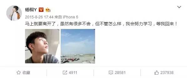 后来有公司想签他,杨桐拒绝了,他说不会进娱乐圈。2015年9月,杨桐去英国阿贝学院留学,这一去要去七年。