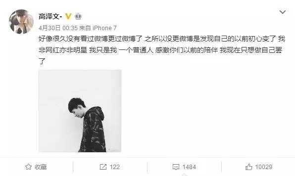 然而他经常发一些广告,微博还关注着网红。
