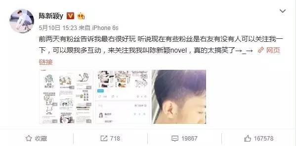还有的点是,前段时间有人发现他关注了一个经纪人,但后来又没有显示关注了,陈新颖自己也发微博澄清:我还没有签什么经纪人,也没有公司,我目前以学习为主,所以也不着急往那方面发展。