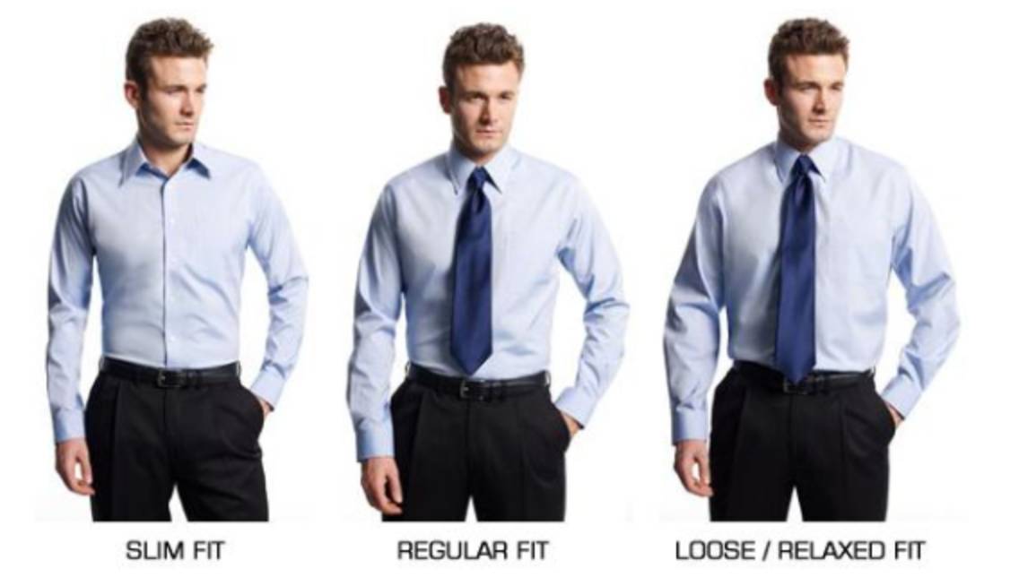 尺寸合适的衬衫也能分成修身(slim fit),合身(regular fit)和宽松(loose fit)三种版型。
