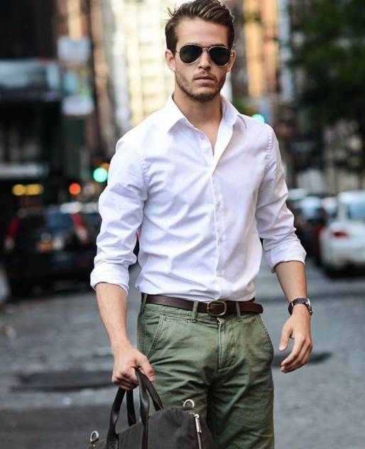 另外,就算是休闲衬衫,也必须是长袖的,短袖衬衫看起来总是不伦不类,如果夏天觉得热,可以帅气的卷起袖子。