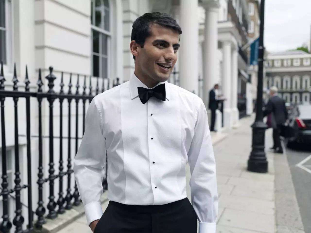休闲衬衫可以敞开领口,但是正装衬衫必须扣好每颗扣子,再搭配领带或者领结。