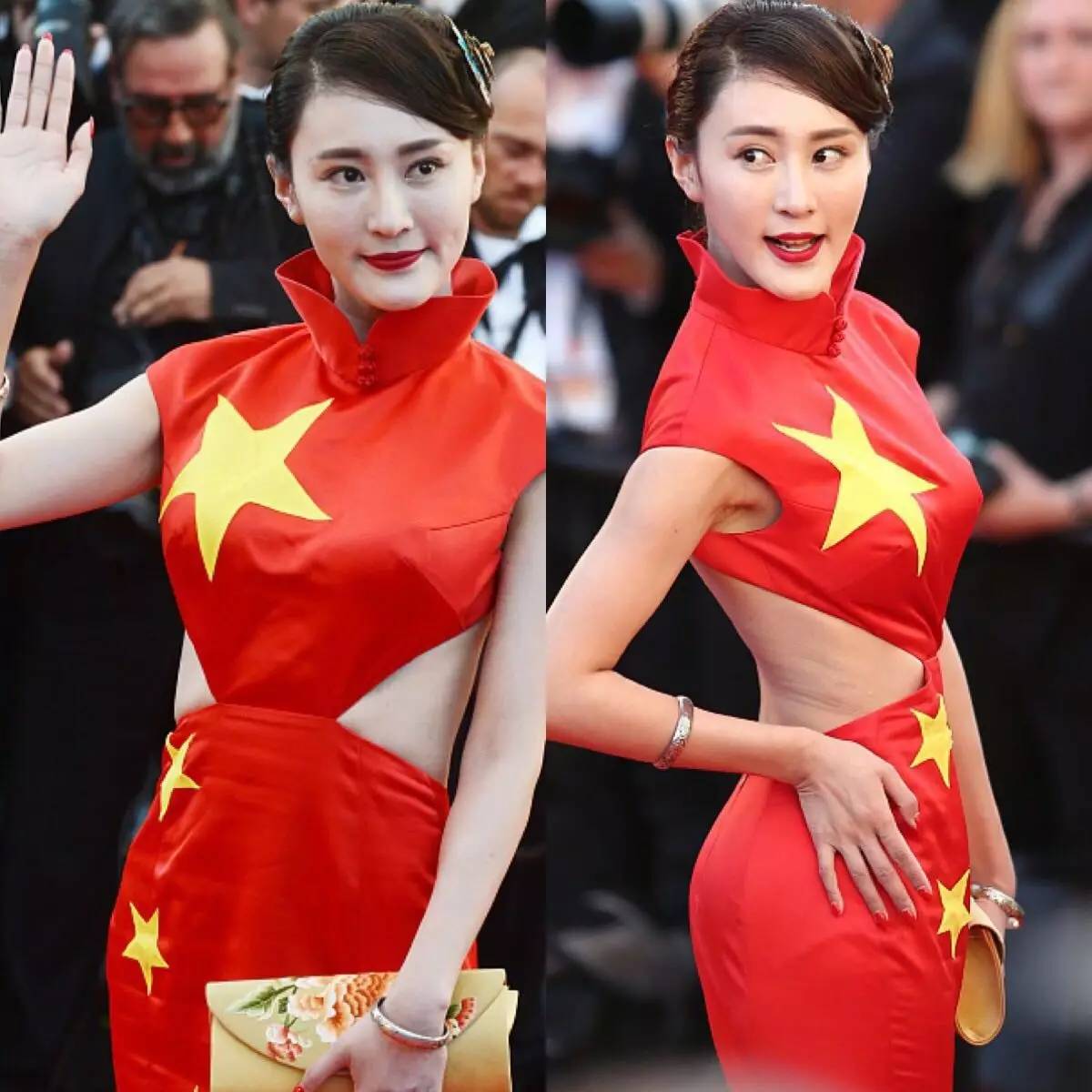 ▲这位身着国旗妆的网红徐大宝在红毯上的造型吓得我们目瞪口呆,一字眉和涂满发胶的头发真的不知道该用什么样的词来形容。