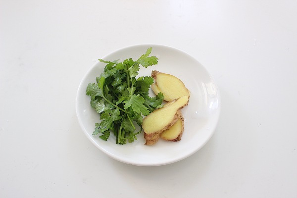 4.姜切片,香菜切段