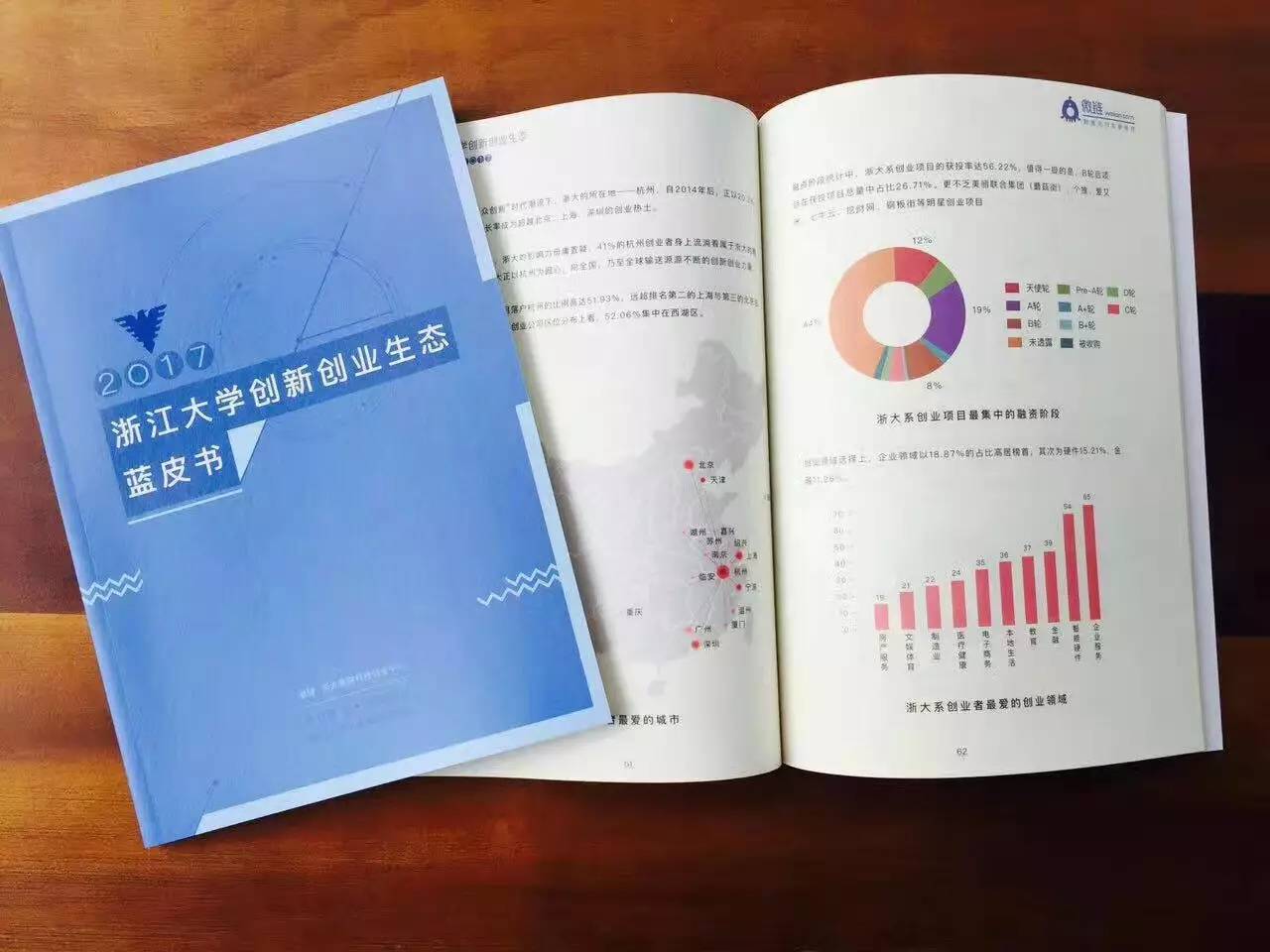 2017年5月20日,在浙江大学紫金港校区隆重举行的“浙江大学全球创新创业论坛"上,《2017浙江大学创新创业生态蓝皮书》正式首发。蓝皮书由浙大管院科技创业中心(ZTVP)、微链联合发起,杭州市科学技术委员会作为指导单位,历时半年,共同发布。