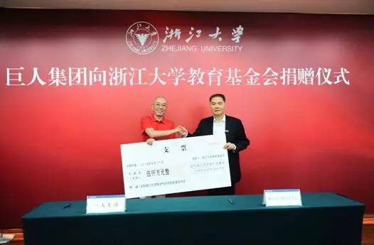昨天上午10点半,巨人集团向浙学教育基金会捐赠的仪式在紫金港校友活动中心紫金港厅举行。巨人集团捐资5000万人民币,支持浙大数学科学学院的新大楼建设。学校将这幢新大楼命名为“巨人数学大楼"。