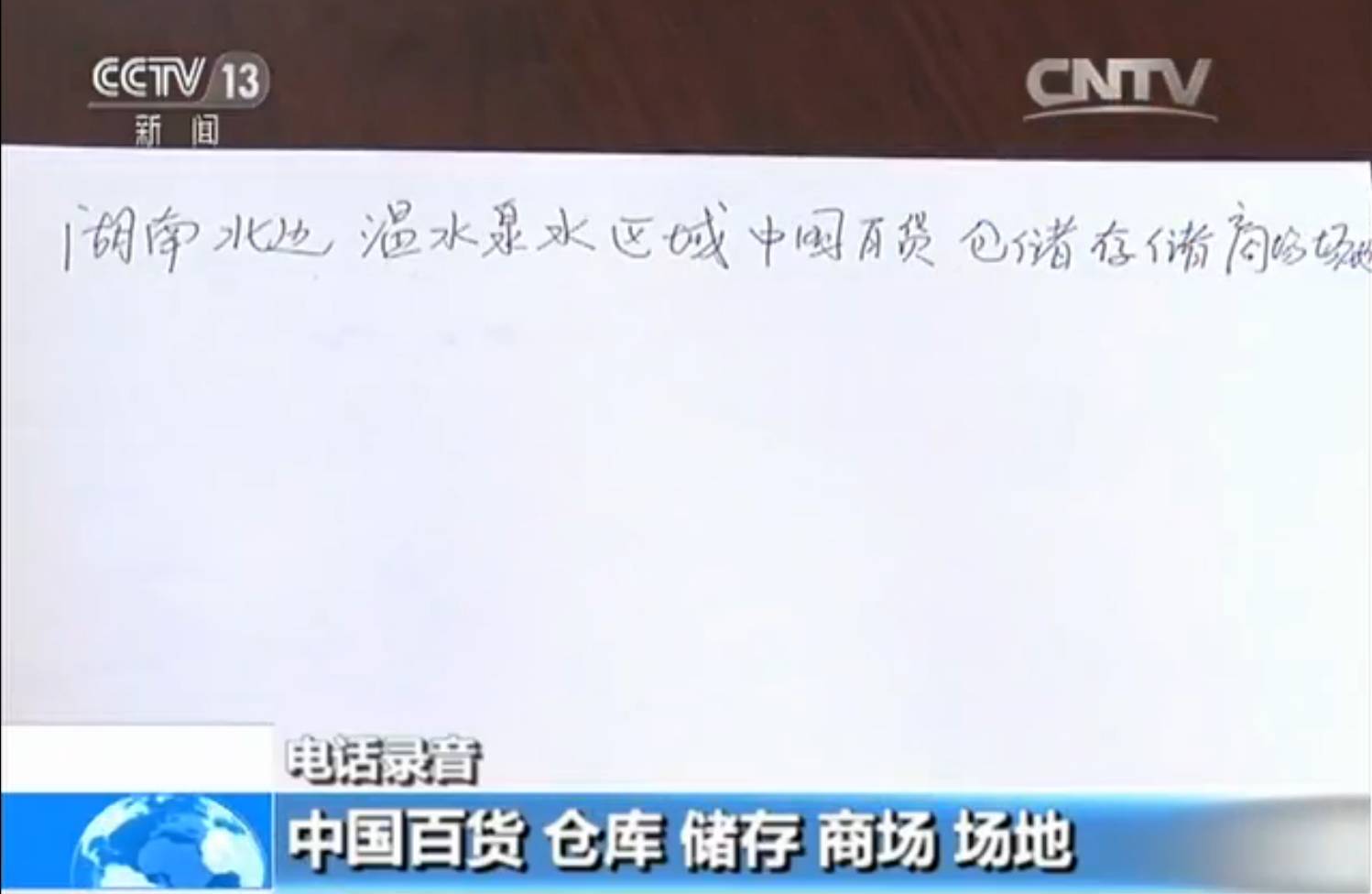 电话中,儿子只说了几个词:湖南北边、温水泉水、区域、中国百货、仓库、储存、商场、场地。