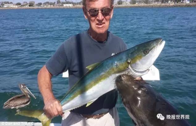 2015年4月,美国加利福尼亚州62岁的老人卡林在圣迭戈市米慎湾钓起一条大鱼,与大鱼拍照留念时不慎被海狮偷袭,被其在水中拖行约6米远。