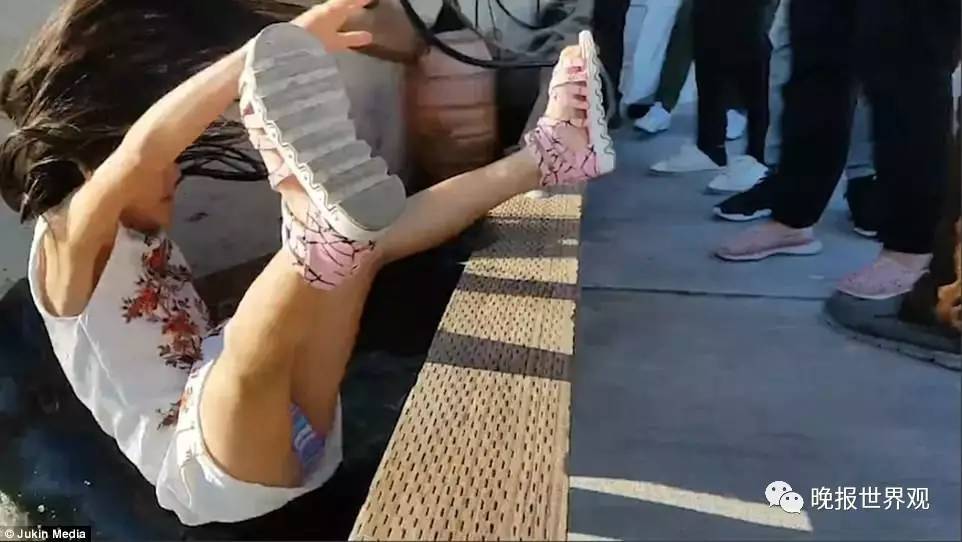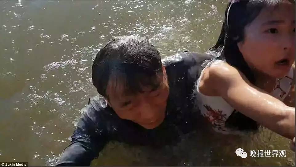 一名男子迅速跳入水中,将小女孩救出,两人在旁边的游客搀扶下上岸,小女孩饱受惊吓,被家人带离现场。该男子据说是小女孩的外公。