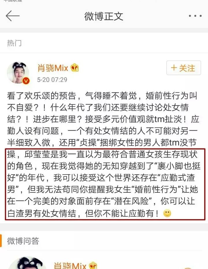 其中应勤被骂得最厉害的观点是“不是处女就等同于不自爱”,网友说这人是“从古墓里爬出来的”