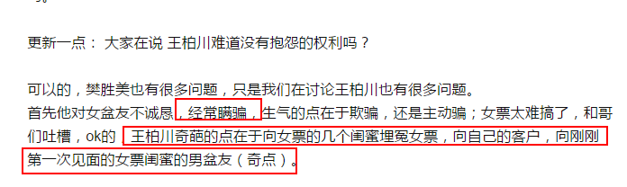 这时候,王柏川最大的缺点显露出来了:向身边所有人吐槽女朋友↓