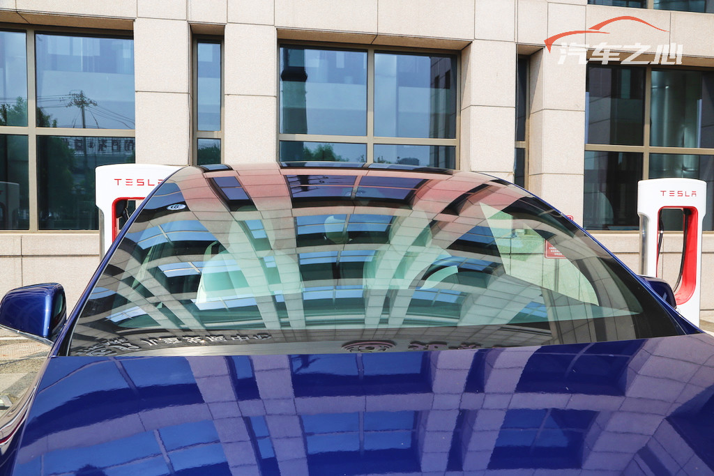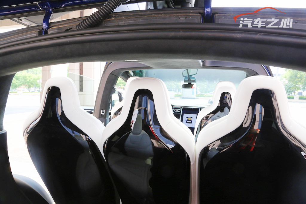 看了这么惊人的门之后,几块异形的玻璃反而就不那么让人惊讶了。Model X 的前挡风超越了“挡风”的含义,更像是和传统的天窗打通在了一起,一直衍生到车顶上部,视野和采光极佳,给人开飞船的感觉。