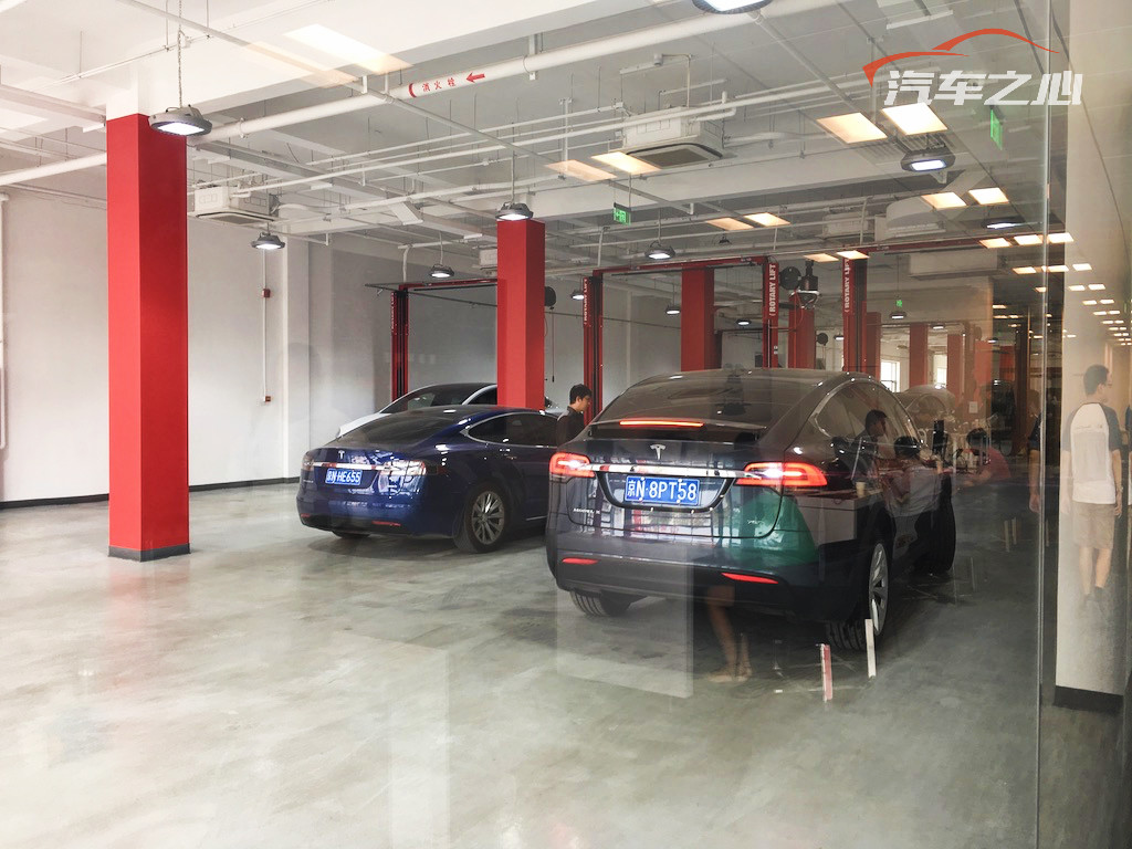 鉴于上面提的中控台死机问题,我们还去了一次特斯拉在北京的 4S 店,服务态度非常好,各种问题耐心解答,超大的玻璃幕墙可以看到车辆的维修状态,中午还有工作餐可以食用。
