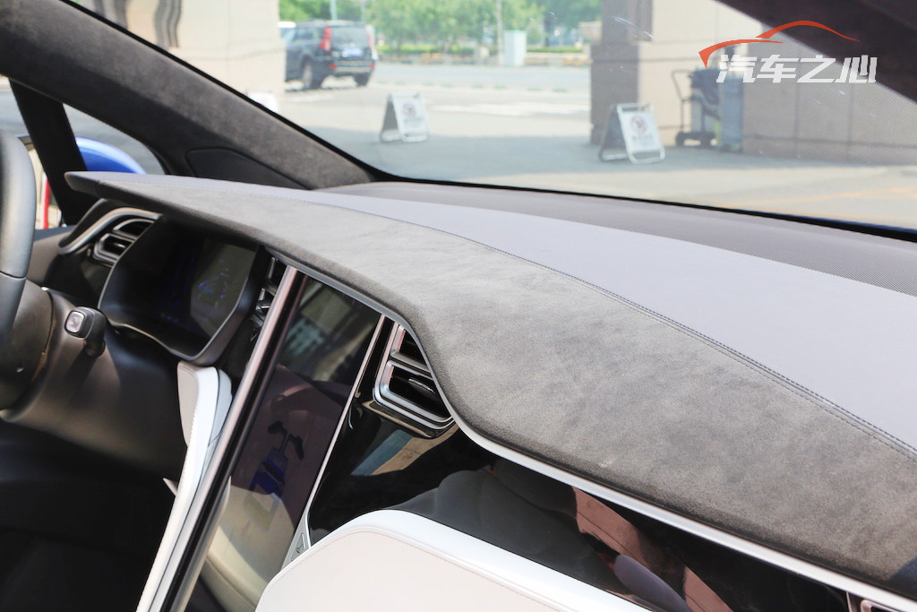 可能是因为全车的风格过于简洁,使得 Model X 除了在关键部位使用昂贵材料之外就没有什么太好的办法去做处理,中控台上方覆盖的翻毛皮是现在 IT/汽车领域的新宠。可惜能用手掰动上沿的中控台并不多见,开口如此不均的手套箱也不多见。