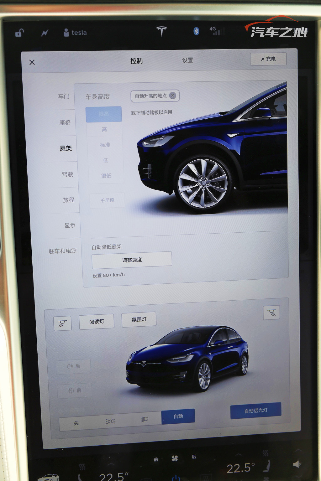 另一方面,这款屏幕是所有操作、设置的发起点,不仅传统汽车智能系统中诸如悬架高度、运动模式等深层次功能要在这些菜单中选择,就连空调、音量等基本的设置也集成在了里面。