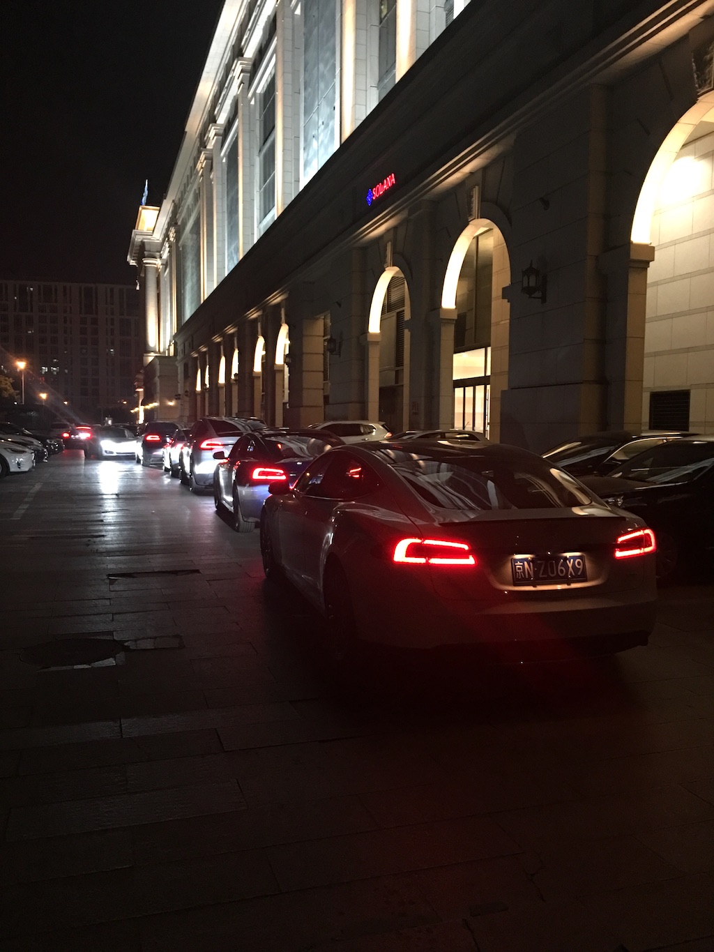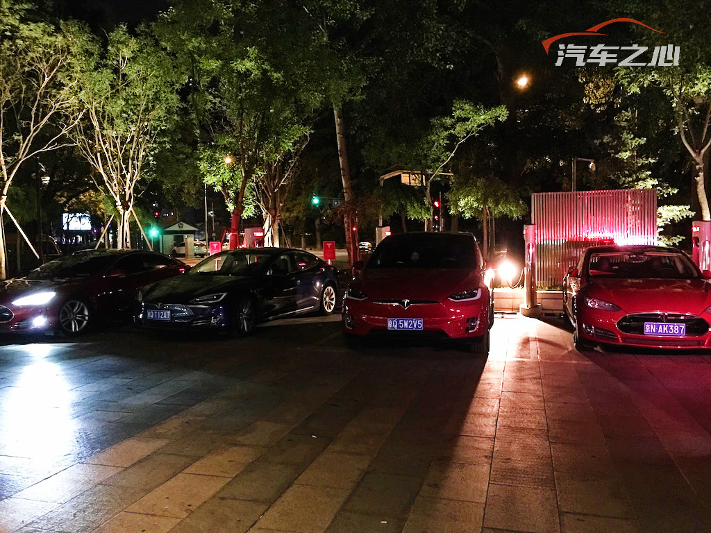 于是我们见识了北京多达 6 个超级充电站,但是,车满为患是常态,在周六晚上的黄金时间,北京五棵松卓展购物中心的超级充电站竟然可以排起长队。