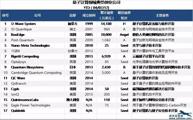 目前,除了部分国家的政府部门,以及大型公司的大力投入,那些凤毛麟角的量子计算创业公司显得格外的与众不同。以下是部分具有代表性的17家创业公司: