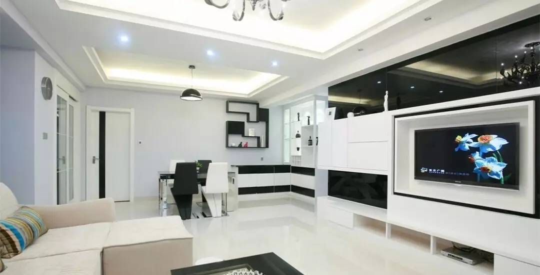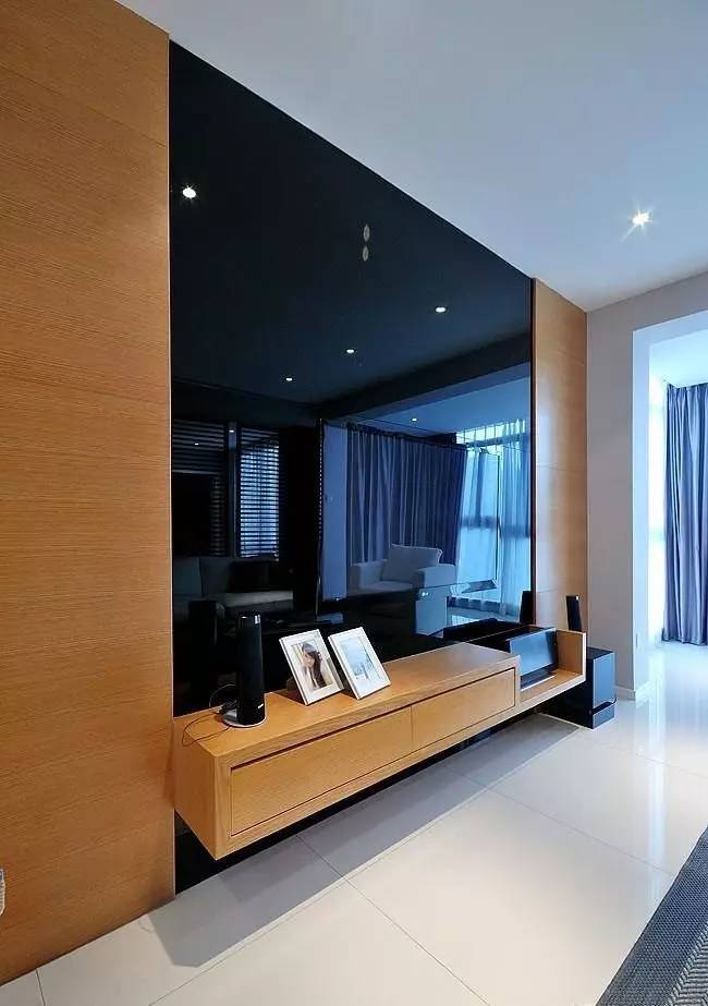 黑玻璃的镜面在家装中运用很广泛,大家家里的油烟机、灶具多数都是这种材质的,很时尚现代;把它用在电视墙上,同样是十分的高档时尚,可以在拥有黑色时尚的同时,又不会显得压抑;