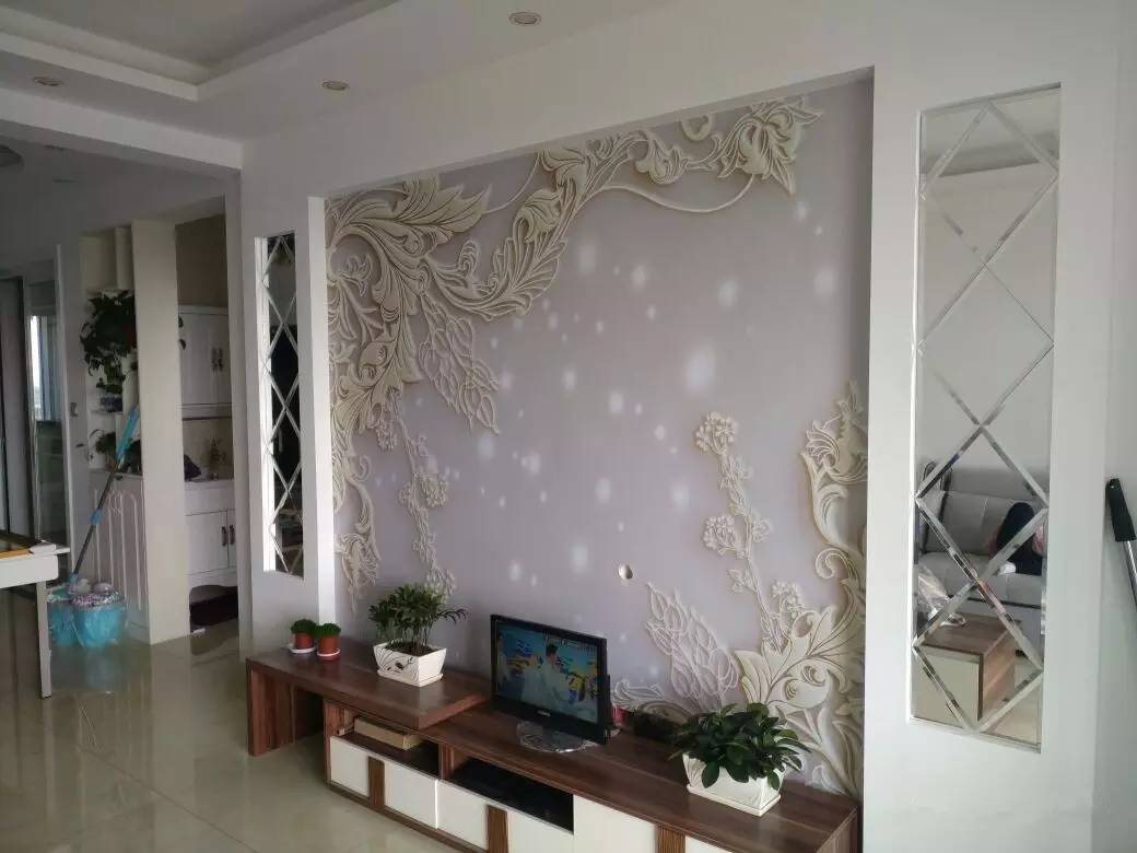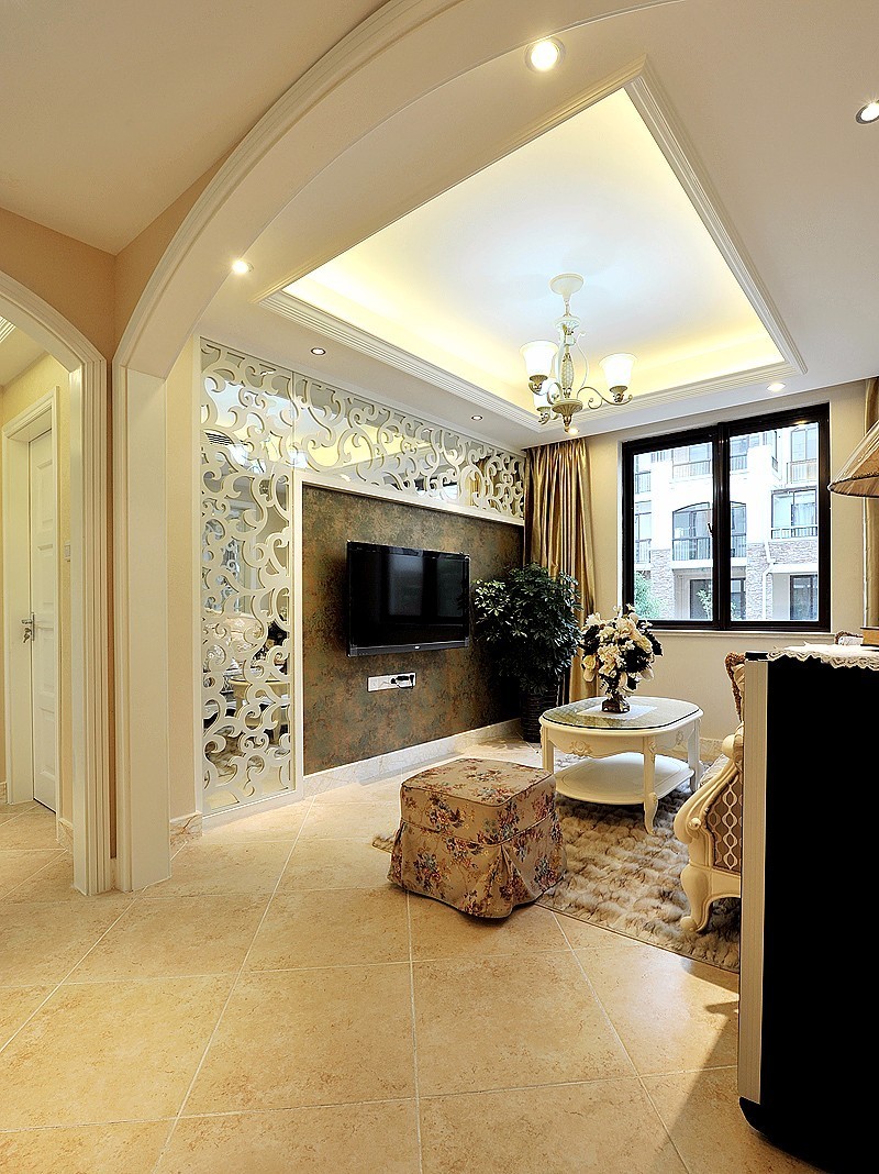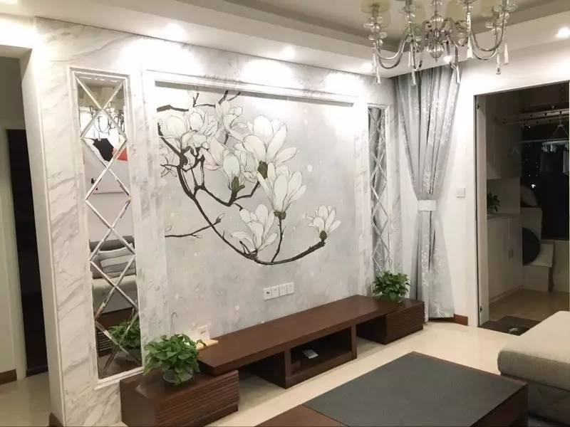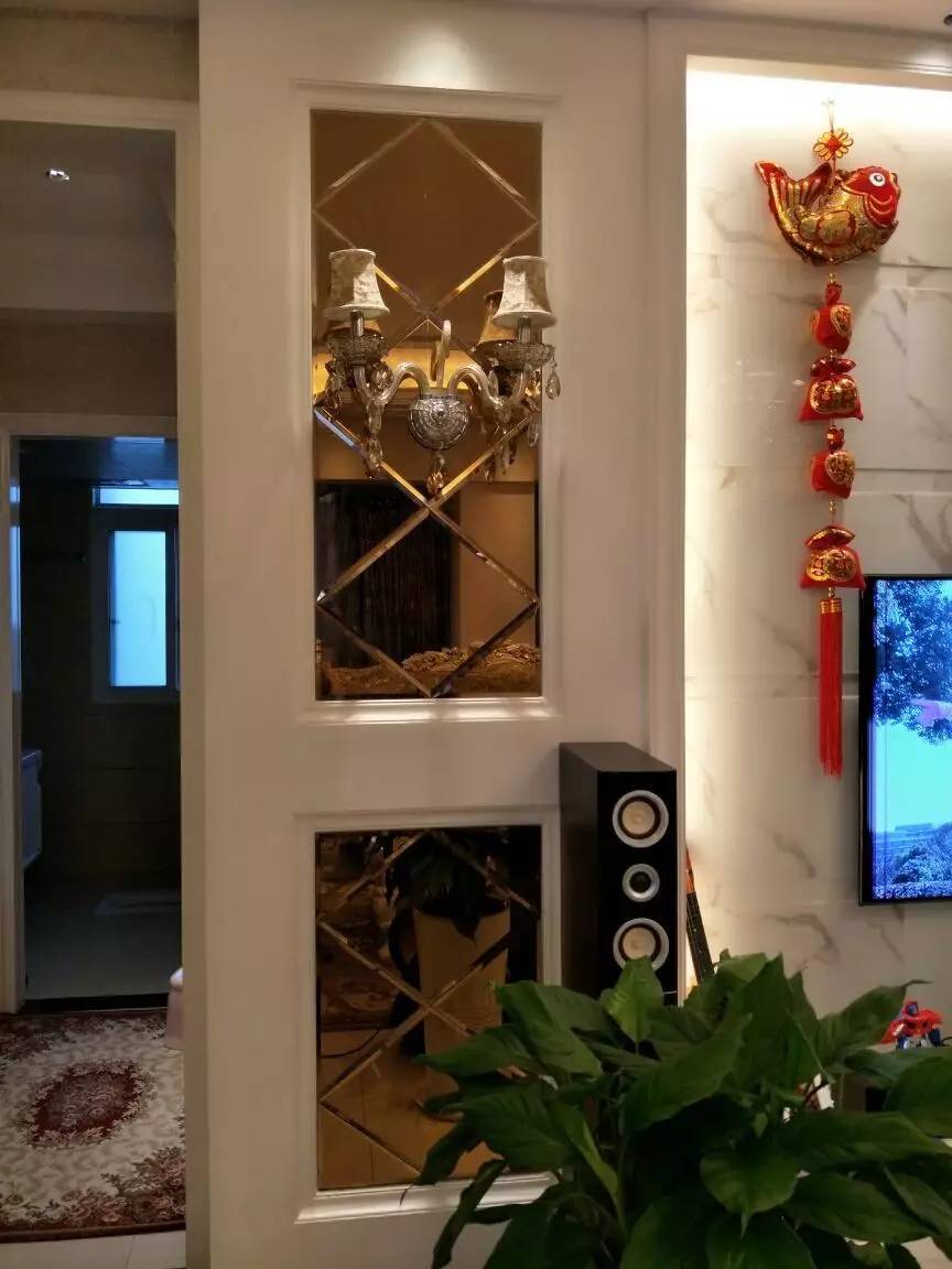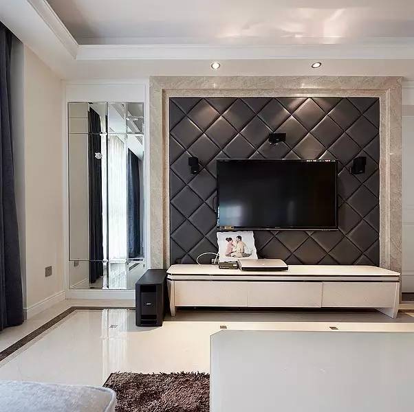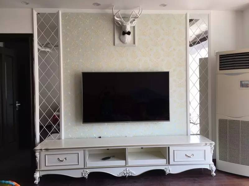 这种做法一般是在电视墙两侧装镜面,并在镜面上做雕花,这种做法在欧式中比较常见,不过小编个人不太喜欢这样的做法,不知道大家感觉如何,下面看图吧!
