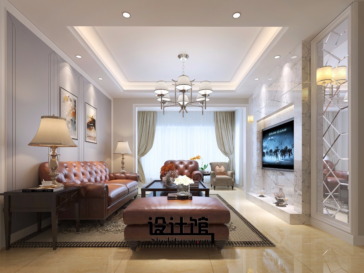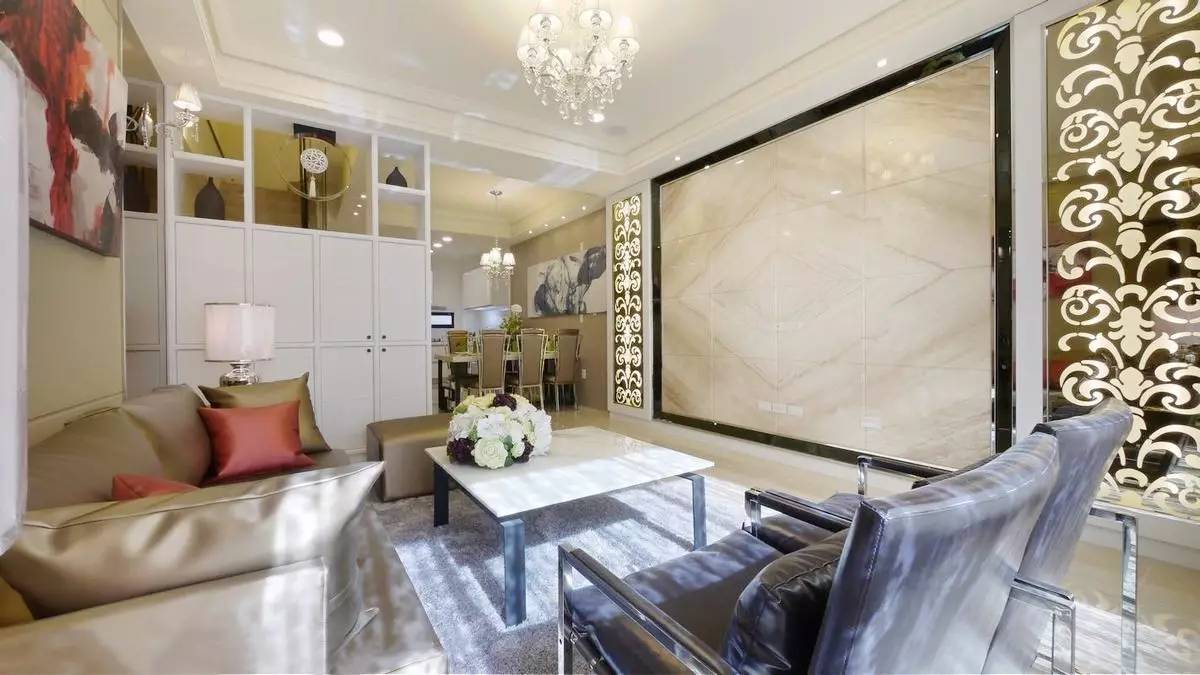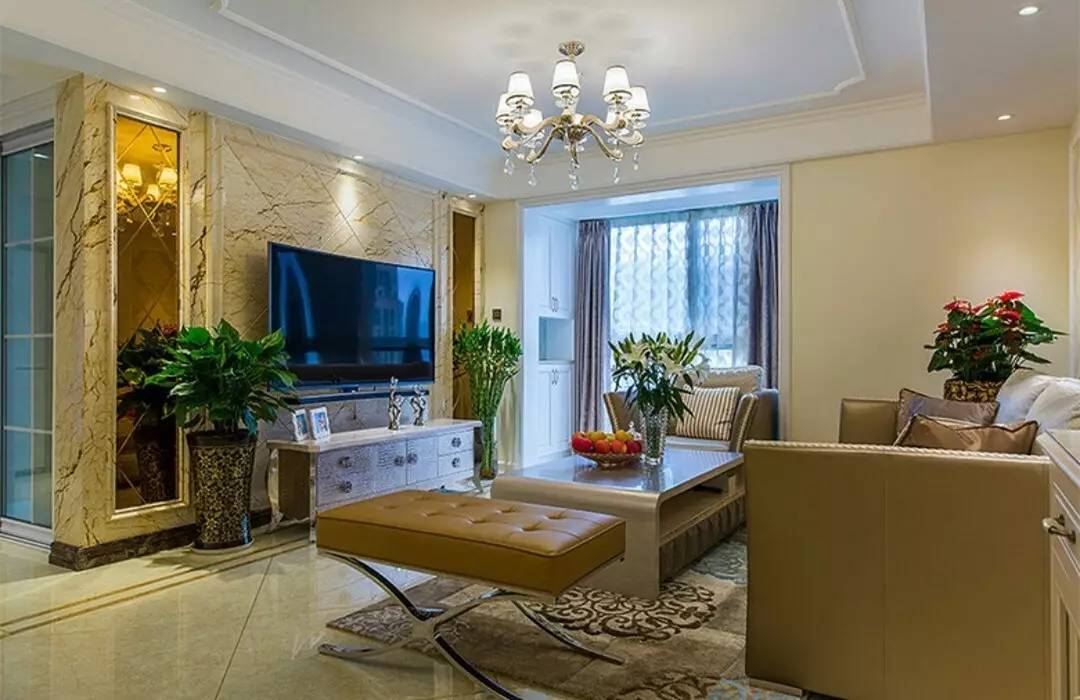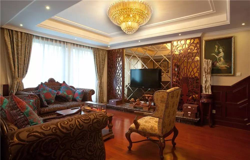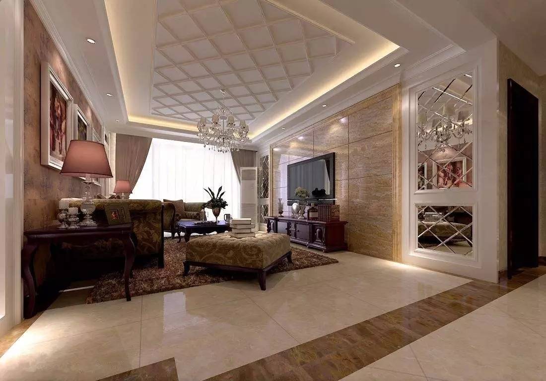 这种做法一般是在电视墙两侧装镜面,并在镜面上做雕花,这种做法在欧式中比较常见,不过小编个人不太喜欢这样的做法,不知道大家感觉如何,下面看图吧!