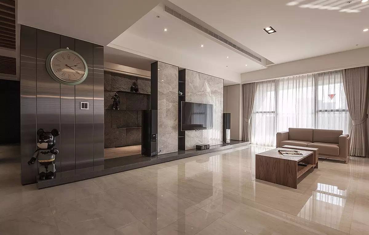 在电视墙里面插入几个条纹造型,再用镜面来填充装饰,这种做法一般是做现代风格中,这样可以让电视墙显得更加丰富有趣,避免电视墙材质单调,尤其是在后现代风格中,这样运用镜面比较常见;