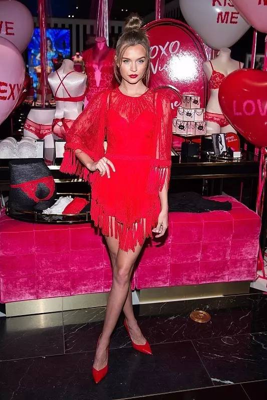 ▲芭芭拉·帕尔文(Barbara Palvin)身穿红色蕾丝透视礼服裙,甜美性感。